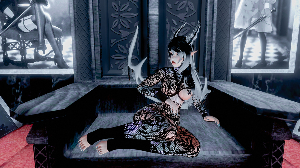 - Color swaps from White, Black, and Purple on the Slinky Dress, Deep V Dress, Pasties, Harness, Heels, Underwear, and Eyes